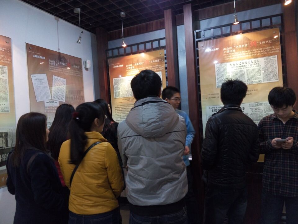 首先,由讲解员带领参观了位于南楼溯源馆,主要展示1896年建校到1949年新中国成立前本校的发展概况,素材大部分来自迁校时保存在档案馆的极其珍贵的清代民国文献。这些精美的、跨越半个多世纪的历史档案、图片与实物,集中反映了交大兴学强国、崇德尚实的学风与“起点高、要求严、基础厚、重实践”的优良办学传统。