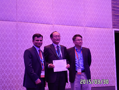ICAE2015大会主席 T. Shamim教授 和ICAE2013大会主席X. Jia教授授予张早校教授获奖证书