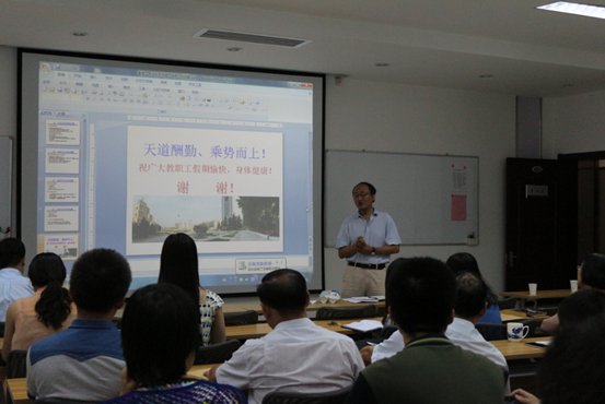 在学院办公楼104会议室召开了全院教职工大会,全面传达学校暑期会议精神,具体部署了学院下半年主要工作。