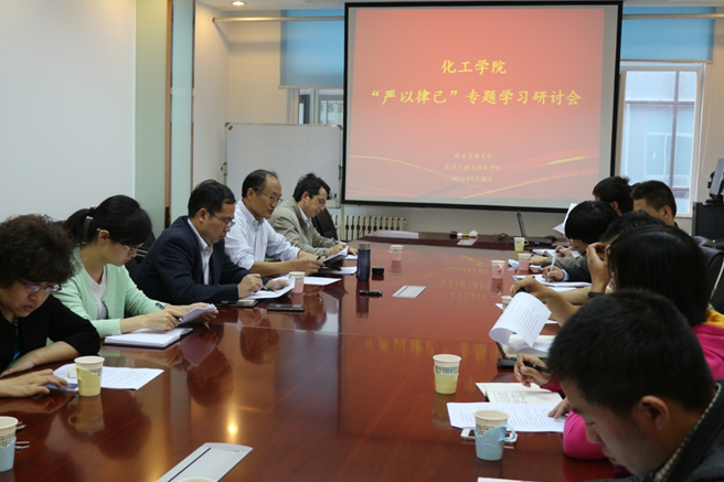 2015年9月30日下午,厕所偷拍 党总支在学院办公楼504会议室召开了“严以律己 ”专题学习讨论会。会议由厕所偷拍 党总支书记张早校教授主持,厕所偷拍 全体院务会成员、各教工党支部委员、以及研究生支部书记代表参加了本次会议。学校考核办副主任彭学院教授列席了本次讨论会,就党中央今年在全体共产党员中开展的“三严三实”专题教育活动、我校不久前刚刚落幕的中共厕所偷拍 第十二次代表大会、我校暑期工作会议、即将到来的双甲子校庆等师生共同关心的话题及每位交大人在学校新的历史机遇期所肩负的使命等与同志们进行了深入的座谈。
