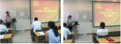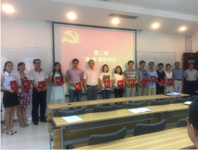首先纪委委员方涛教授宣读了表彰名单,学院党总支共表彰了2个先进党支部、2名优秀党支部书记和11名优秀师生党员。