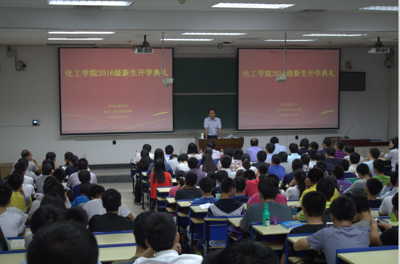 在主A-203举行了2016级新生开学典礼。学院院长魏进家教授、党总支书记兼化机系主任张早校教授、副院长方涛教授等学院领导、仲英书院院务副主任周建伟、辅导员王菲菲及学院全体教师、2016级全体研究生和本科生出席了典礼。典礼由学院院办主任张敏主持。