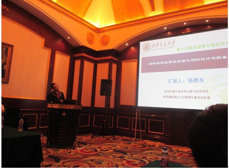 此次会议有来自国内、外247家单位超过1000名代表参加,是迄今为止规模最大的一届青年催化会议。应大会组委会方邀请,我院杨贵东副教授主持了分会场会议,并代表工业催化研究所做了题名为“结构敏感性高效光催化剂的设计与制备”的报告。在报告中,杨贵东老师结合当前人们所面临的能源短缺与环境污染的问题,阐述了光催化技术在光解水制氢和环境治理等领域起到的关键作用。介绍了课题组近年在控制纳米光催化材料的微观结构,研究物料的传递、反应与材料生长之间的内在联系,发展光催化材料合成和结构控制新方法等方面的研究工作。报告得到了在场同行专家的高度认可和一致好评。此次参会加强了我院师生与国、内外知名学者的学术思想交流,进一步提升了我院在国内催化领域的学术影响力。