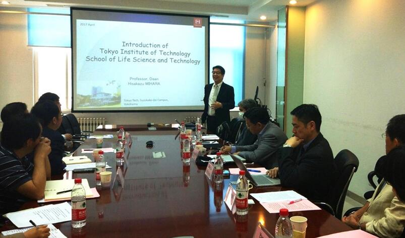 建立学术交流与合作关系。他随后介绍了东京工业大学以及生命科学与技术学院的发展历史,并着重介绍了2016年学校的改革措施。东京工业大学成立于1881年,是以工程技术与自然科学研究为主的日本顶尖、世界一流的理工类大学。东京工业大学是日本国际化程度最高的高校,国际生比例达到12.5%。三原教授介绍了数个校级留学生交流计划,包括YSEP(Young Scientist Exchange Program)、ACAP(Academic Cooperation Agreement Program)计划等,合约为两国留学生交流提供优惠政策,并鼓励青年科研人才到东京工业大学进修。随后三原教授扼要介绍了他的研究领域,主要为应用于癌症细胞分析的多肽工程,包括有生物芯片的研发、功能性多肽的合成与应用、细胞穿透肽的分析与应用等研究方向。