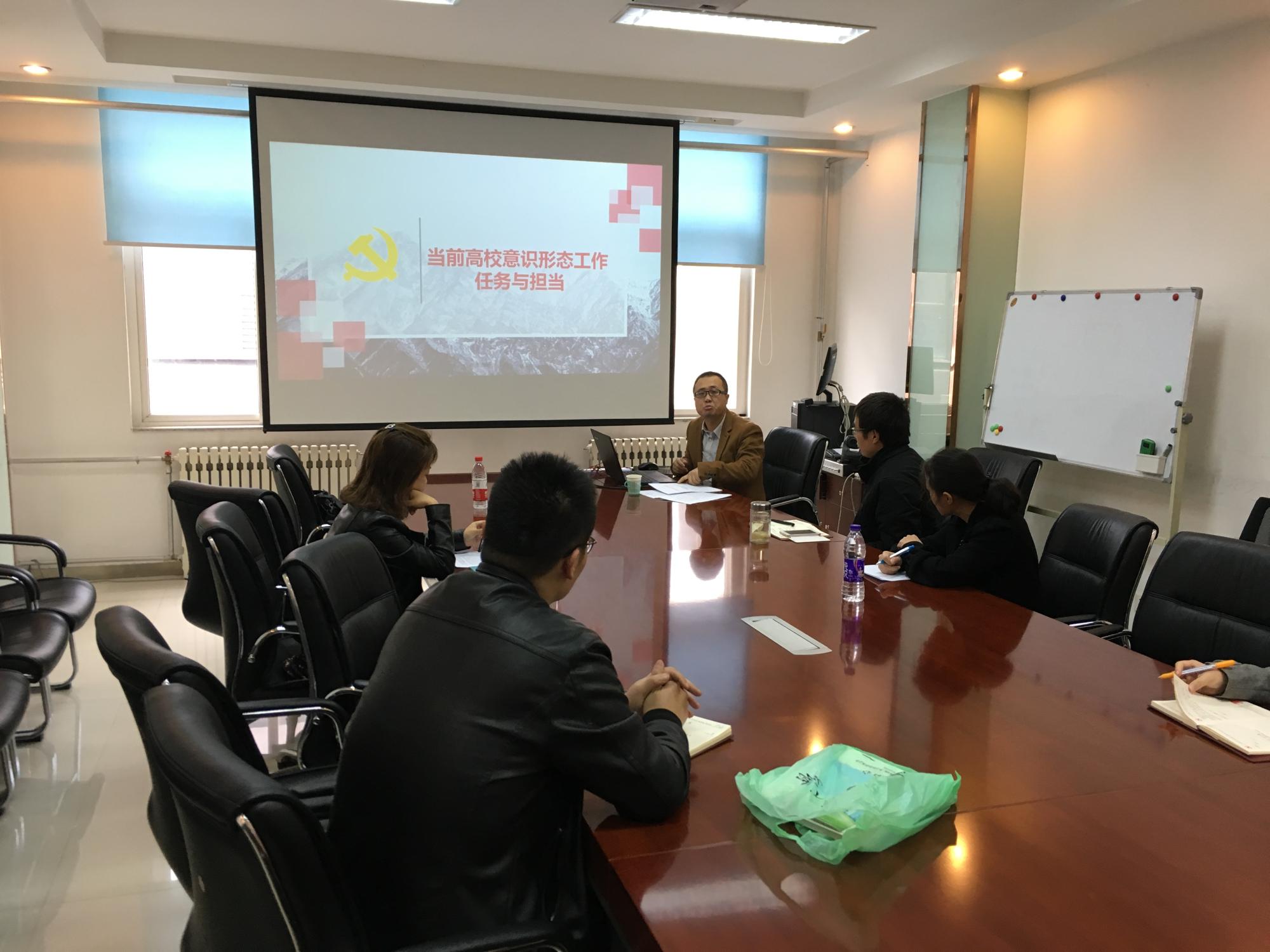 ,分别做题为《当前高校意识形态工作任务与担当》与《学院新闻宣传工作探讨》的讲座并与行政与实验党支部全体党员进行座谈。