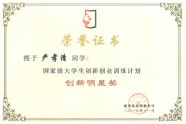 一直来非常重视学生科研能力和创新创业能力的培养,将创新创业训练教育纳入本科教育培养方案中,构建了以国家级项目为牵引的国家、省级、校级、院系四级大学生创新创业人才培养体系。以院系培育、校级提高、省级完善、国家级深入的方式,引导项目成熟。