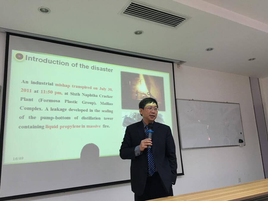 徐副校长作为化工安全领域著名专家,学术和实务经验丰富。课上,首先向我院师生介绍其在台湾地区从事的安全生产重点研究项目,研究涉及化工、医药、环保等重要领域。接着,徐副校长为以丙烯纯化工艺为大背景并揭示其潜藏的安全隐患。研究表明,丙烯在进行吸附脱水反应时会产生大量的热,而当反应温度超过150度时,采用的吸附剂高活性氧化铝会转变为催化剂,促使丙烯发生寡聚合反应,从而产生更大的热量,且高温使得反应器材质降伏强度下降,致使高压丙烯喷出引发火灾。研究并采用量热技术与CFD数值模拟相结合的方式,重现其灾害发生过程及提出系统改善建议,并为该工艺的灾害防控策略提供了理论支持。