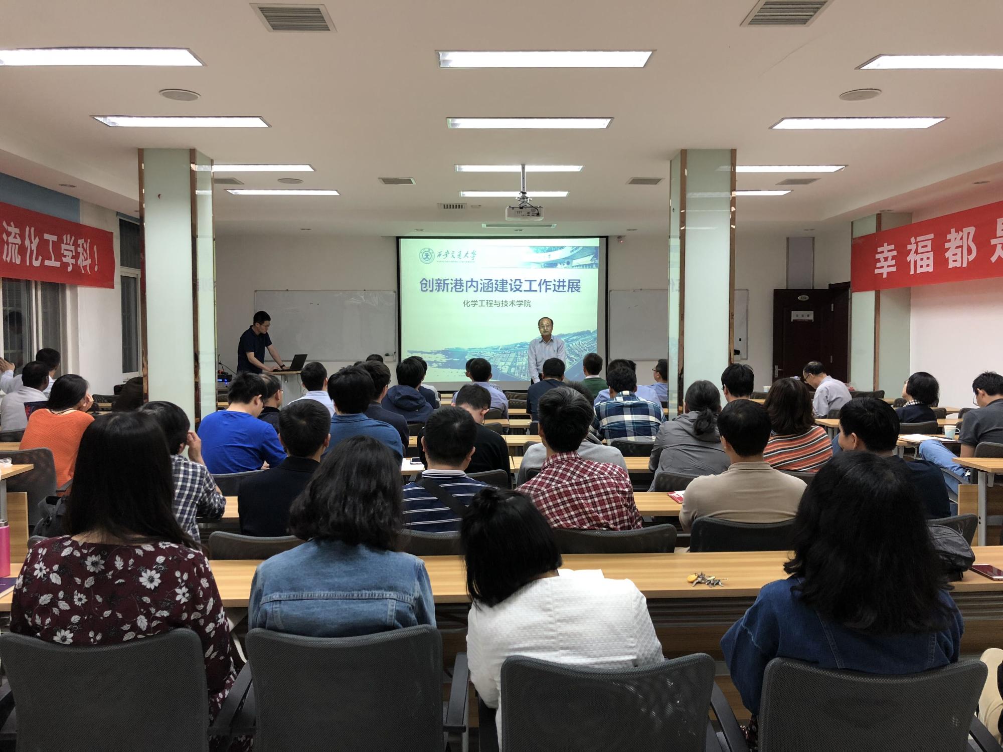 会议首先集体观看了创新港最新宣传片《创新引擎交大速度》。之后由分党委书记张早校传达学校第十届教代会暨第十五届工代会会议精神,他进一步强调张迈曾书记“奋斗是我们学校历史的写照,是今天发展的基调,是时代主题词,是每一个成就事业者的动力和形象”的讲话,号召全院教职工鼓足干劲,在奋斗中不断创造留下历史印记的新贡献。紧接着,张早校对创新港内涵建设动员大会精神进行了传达和解读,对创新港化工板块所在19号楼的物理空间进行了详细介绍,并宣布成立创新港工作小组,要求全体教职工从现在开始对化工研究院未来在创新港的布局进行科学谋划,合理布局,启动实质性建设。学院会在近期分批安排教职工赴创新港实地调研。他要求全院教职工要传承弘扬好“西迁精神”,把握交大发展的历史机遇,把创新港化工板块建设成为标志性科研教学基地,创造留下历史印记的新贡献。