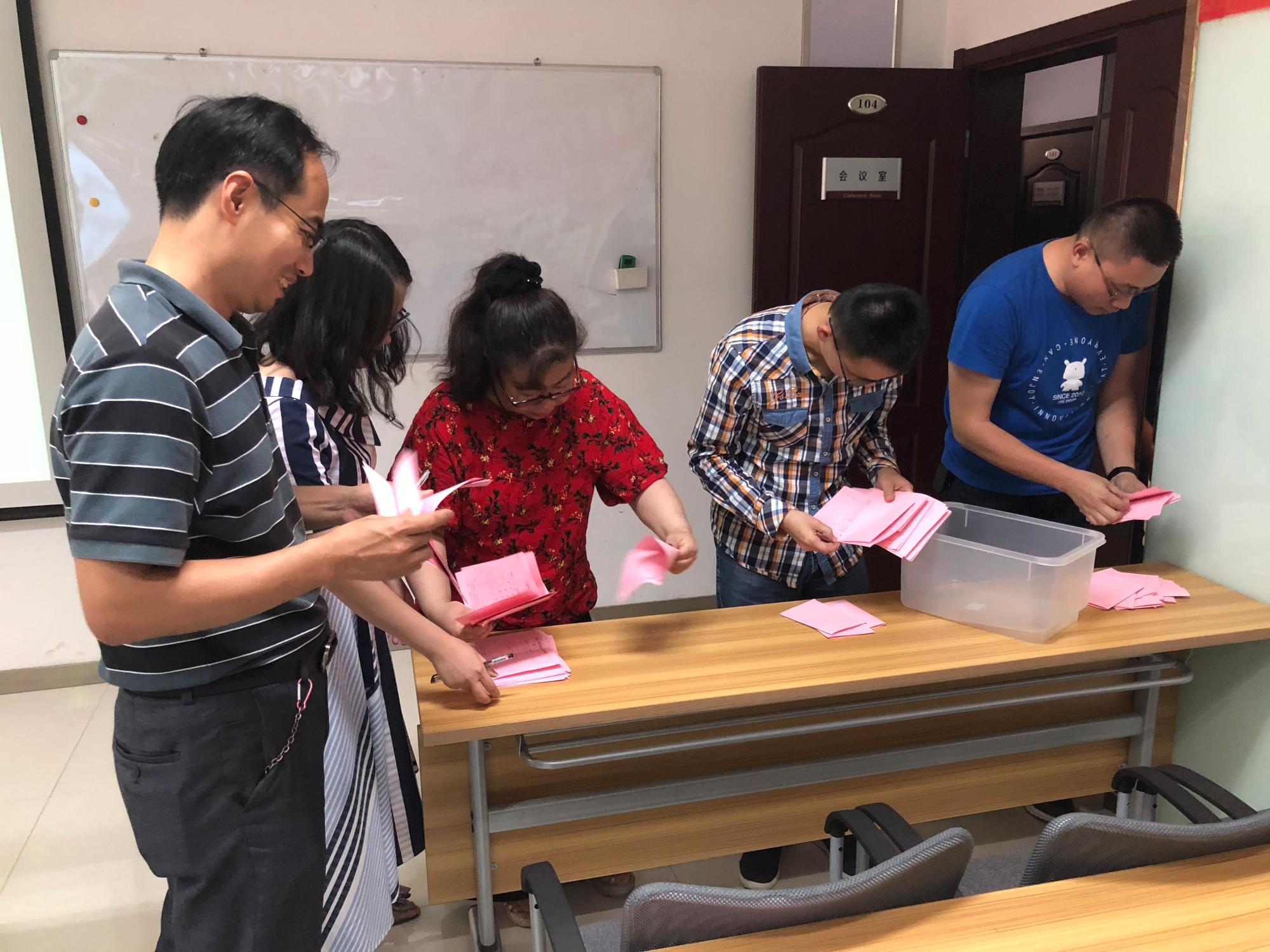 第二届工会委员会选举办法、候选人名单和工作人员名单,选举正式开始。经到会教职工无记名投票、现场唱票计票,最终蔡元汉、邓建强、林丽萍、齐宝金、屈龙、张桥、张永海等7名候选人当选为第二届工会委员。