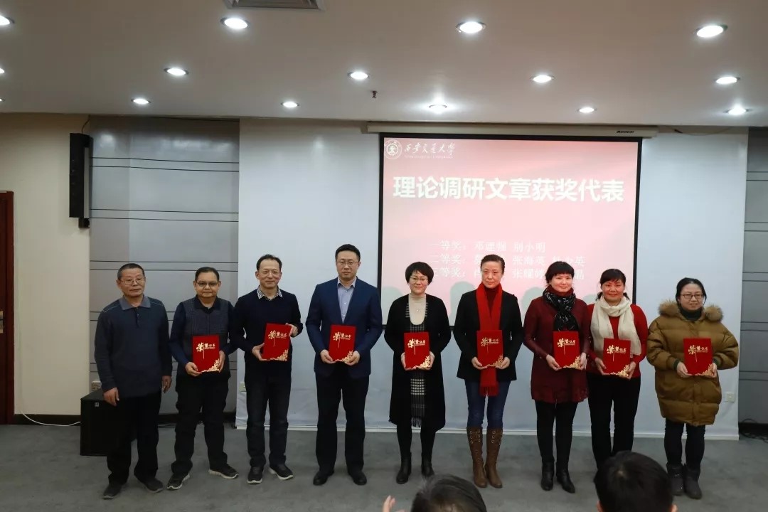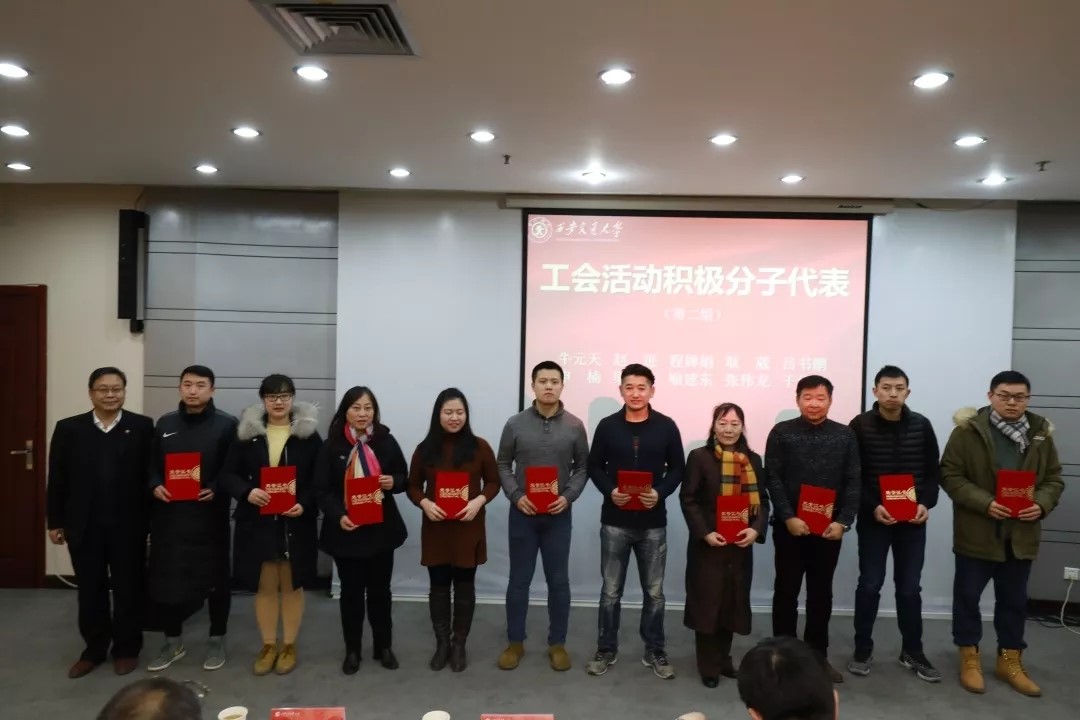 风劲帆满图新志,砥砺奋进正当时。2019年1月11日,学校召开2017-2018年度工会系统表彰大会,激励表彰先进,助推工会工作。我院获得首届“示范职工小家”分工会集体荣誉表彰和奖励;侯雄坡、邓建强和方涛撰写 的“高校工会基层组织进一步‘增三性’问题研究”获得2018年度工会理论调研论文一等奖表彰和奖励;女工委员林丽萍获得“优秀工会干部”称号,分工会行政小组长牛元天获得“工会活动积极分子”称号。