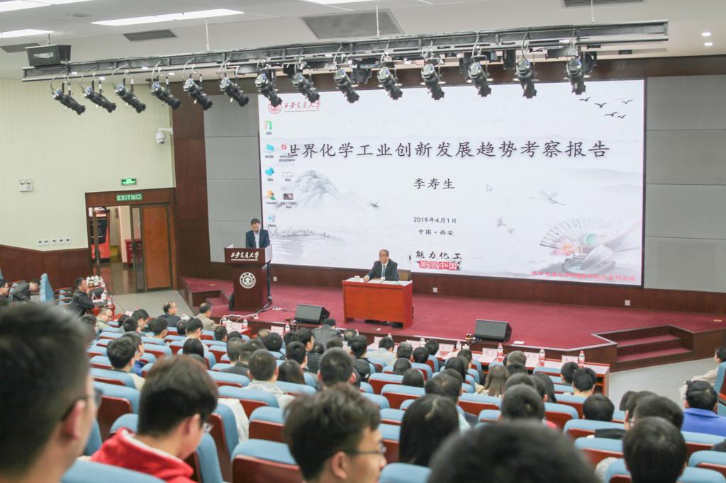 随后,李寿生会长在科学馆101为交大师生作了题为“世界化学工业创新发展趋势考察报告”的学术报告,报告包括世界化学工业创新发展的五大新趋势、世界化学工业创新发展新趋势的有益借鉴以及中国石油和化学工业产业结构调整升级的方向三个方面。李会长表示,中国要想从石油化工大国走向石油化工强国,任务艰巨,要实现石油化工的强国梦,不仅需要当代人的努力,更需要年轻一代人的持续发力;同时,要充分发挥陕西得天独厚的自然资源、科研院所、企业以及历史文化优势,立足陕西,放眼世界,在石油化工行业走出一条具有陕西特色的道路,做出陕西应有的贡献。报告会后,李寿生会长还就当前化工安全、炼化一体、二氧化碳利用新技术等问题与师生进行了热烈互动。