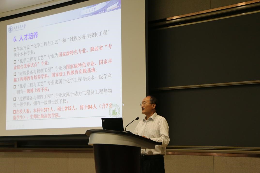 会议伊始,全体起立,齐唱国歌。张早校首先转达了因事未能参会的院长魏进家教授对同学们的期望,然后代表学院致欢迎辞。张老师首先从学院历史沿革、师资队伍、学科建设、科学研究、人才培养和国际化等几个方面对学院的总体情况做了简要介绍。接着从西迁精神入手,对新生提出了几点希望,希望同学们要有爱国情怀,作为交大的一员,要始终秉承爱国爱校传统,倡导“四种文化”,争做西迁精神新传人,其次要有创新精神,要有克服困难的勇气,最后,为人为学要诚实守信。