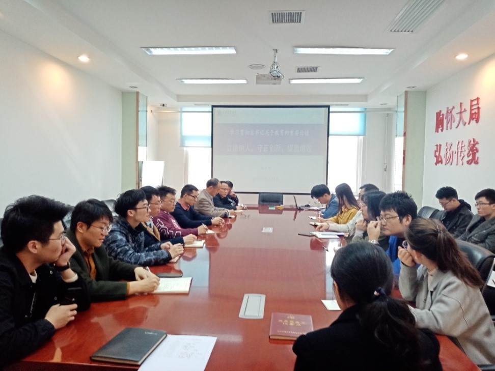召开党政联席会,分党委书记张早校带领全体成员集体学习了十九届四中全会公报和学校关于贯彻落实党的十九届四中全会精神有关任务的通知,梳理和完善了学院党政联席会议制度和学院“三重一大”决策制度,会议由魏进家院长主持。
