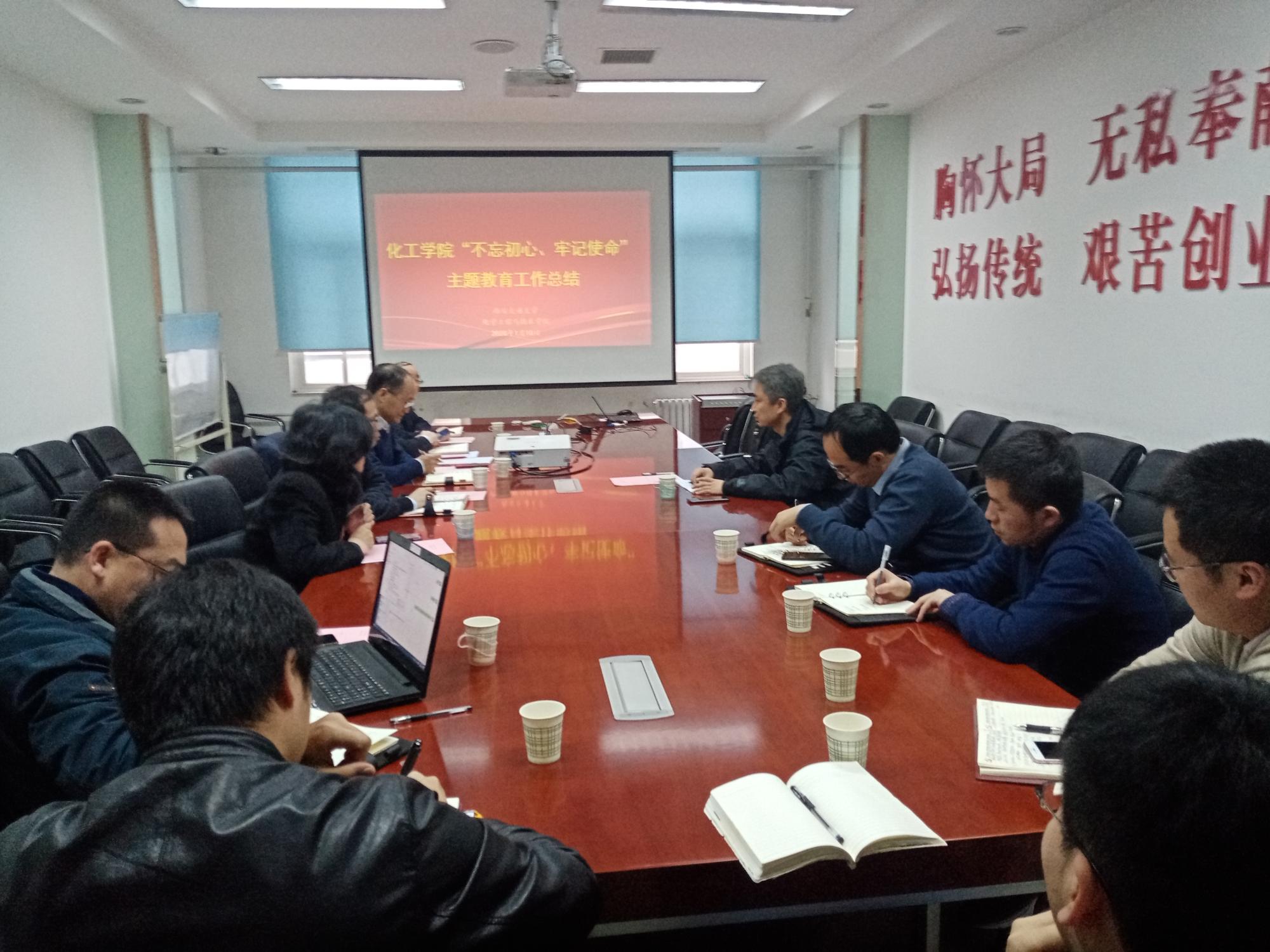 在院办504会议室召开了“不忘初心、牢记使命”主题教育工作总结大会,全体班子成员、省级科研机构负责人、党委委员及教工党支部书记参会,学校第八指导组副组长李小跃列席,会议由分党委副书记沈人杰主持。