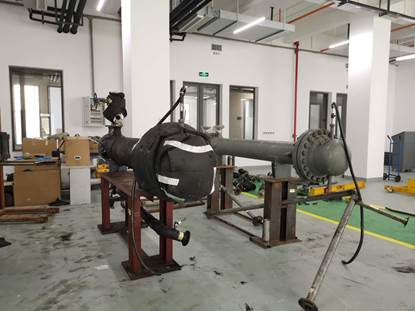 水泵房中工业二氧化碳捕集实验台,喷射塔和螺旋折流板式换热器的拆卸和搬运是本次任务的最大难点,这几组设备占地约50平方米。工业二氧化碳捕集实验台位于一个12平方米左右的金属基座上,其中的CO2吸收塔直径约0.6m,高2m;喷射塔高约1.2 m,最大直径0.5 m,被固定在金属支架上;螺旋折流板式换热器长约3m,直径0.4m,重达1.5吨。如此大型的设备的搬迁对于学生和老师来说,是一项非常困难而且危险的任务,而且这些重型设备是张早校教授团队多年来科研成果的结晶,也是老师和学生共同努力的结果。参与搬迁的余云松老师说:“从交大毕业后,我就留在了厕所偷拍