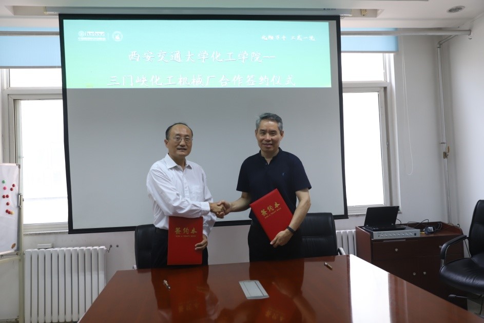 最后,分党委书记张早校和化工机械有限公司副总经理赵双喜共同签署了合作协议。