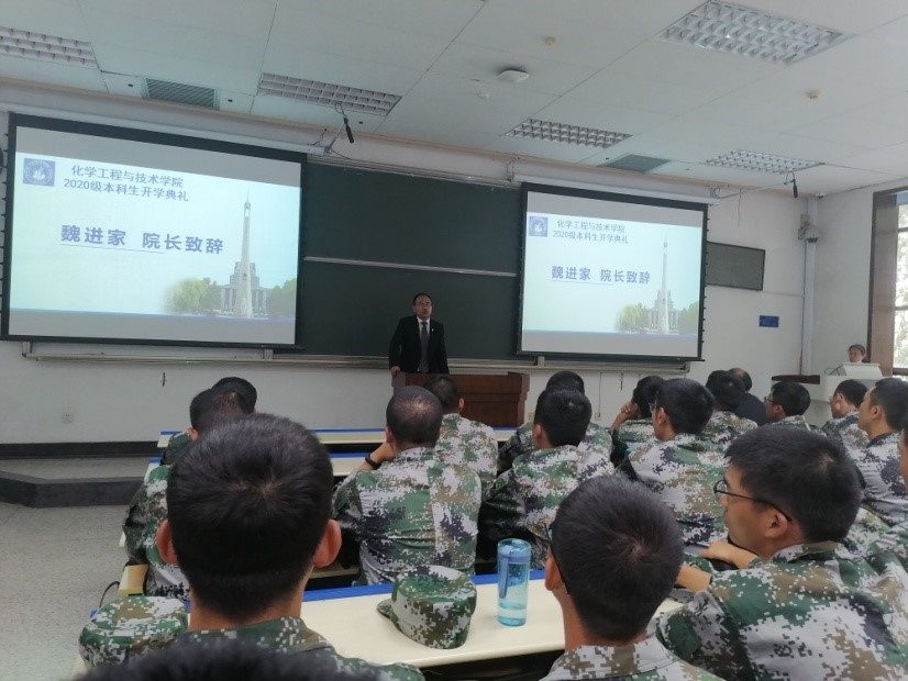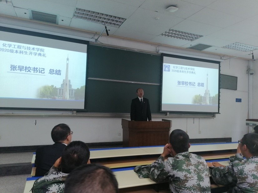 在主A203教室隆重举行2020级本科生新生开学典礼。学院党委书记张早校,院长魏进家,副院长李云,化工系主任伊春海以及2020级全体本科生新生、新生导师参加典礼,活动由副书记沈人杰主持。
