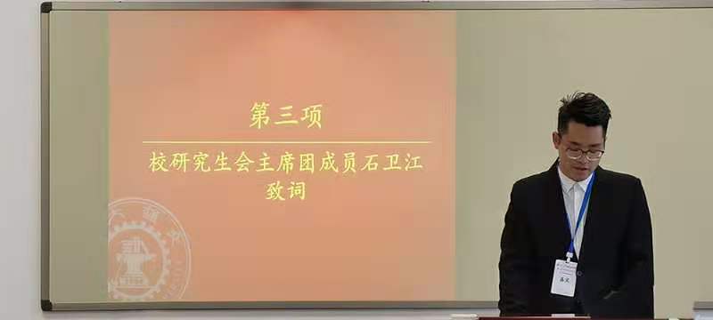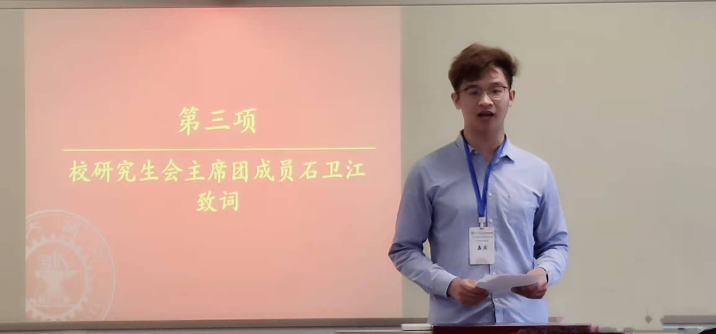 研究生代表大会的召开表示祝贺,对化工研分会的长期以来的工作给予充分肯定,并对未来工作提出了几点希望。一是加强思想政治引领,二是全心全意服务同学,三是持续推进作风建设。