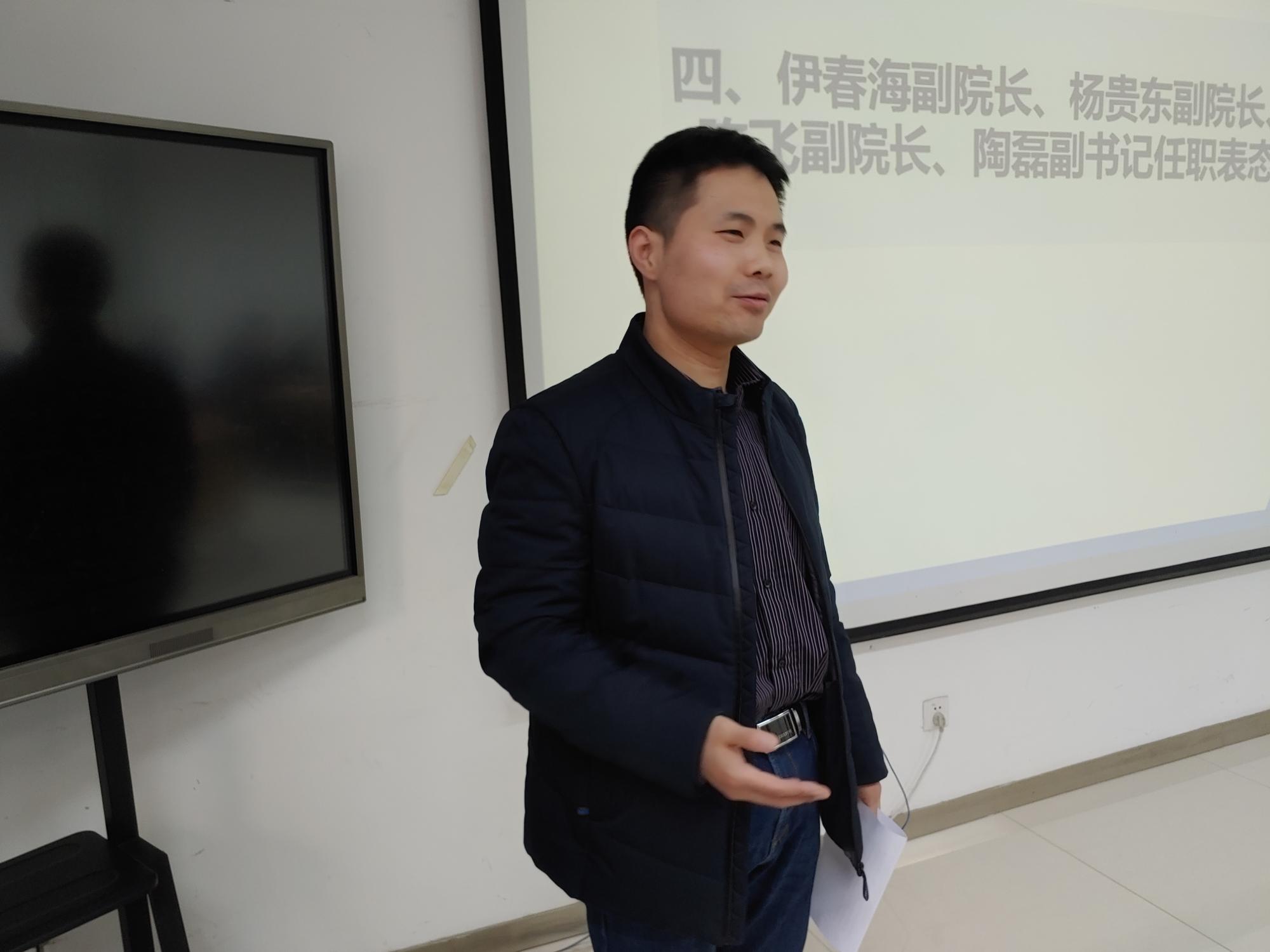 副院长伊春海、杨贵东、陈飞,副书记陶磊也分别作表态发言。他们均表示要加强理论知识和管理方法的学习,尽快转换角色,“公心投入”,团结一致,助力学院和学科发展。同时严格要求自身,自觉接受党委和群众监督。