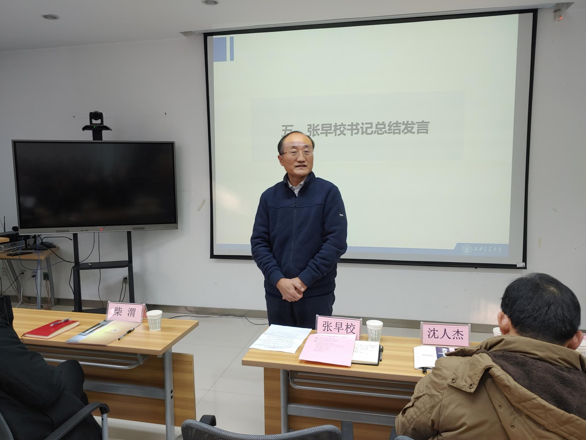 张早校作会议总结。他表示,2020年学院在教书育人、科研合作等多方面均取得了一定突破,同时仍需要继续着力弥补短板。新一届行政班子面临学科评估、“十四五”规划等艰巨任务,任重道远。他代表学院党政领导班子表态:一是全面深入贯彻落实学校党委战略部署,提高理论水平;二是加强业务学习,全面提升业务水平和执行力;三是进一步加强制度建设,班子成员落实好一岗双责,起到表率作用;四是加强文化建设,密切联系群众。希望班子成员以实干精神推动学院高质量发展,加快建设一流强院,用实际行动向学校党委、全校师生和海内外校友交出一份满意答卷。