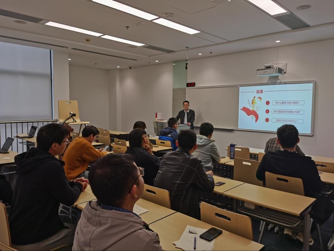 党支部书记胡文亨以“学四史、强信念、跟党走,传承党的红色基因——学习新中国史”为题开展主题党课,与大家一同重温这一部中华民族从站起来、富起来到强起来的伟大飞跃史。他指出学习新中国70多年光辉历程给我们带来了很多历史启示,这些历史启示都弥足珍贵,我们要从新中国70多年历史中汲取营养、汲取智慧,开启更为光辉的历程、创造更为伟大的奇迹。他解读了《硕9135党支部2021党史学习教育计划》,为下一阶段四史学习开好局、布好篇。同时,他传达了“全国两会”重要精神,解读政府工作报告,并就近期热点问题与大家探讨。