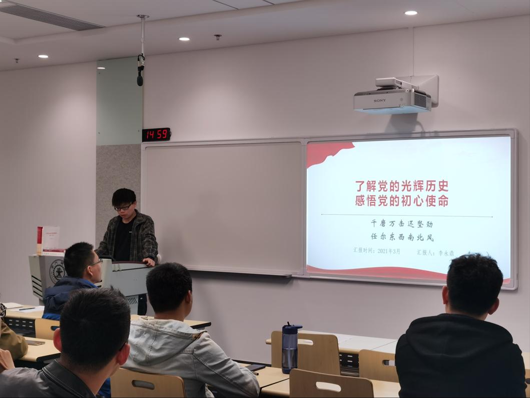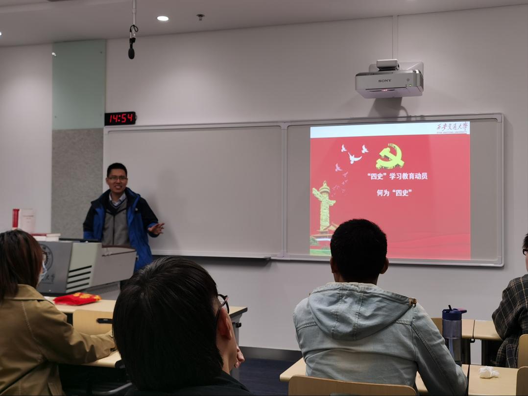 随后,团支部书记刘万渤、班长闫浩祺分别从改革开放史、社会主义发展史等方面进行“四史”学习概述,带大家共同体会这一系列跌宕起伏、披荆斩棘的担当史、奉献史、奋斗史,激励和鼓舞大家作为光荣的交大同学,自觉提高政治站位和传承西迁精神的政治觉悟,突出真学实做和学史力行,勇于克服现存的技术瓶颈和条件困难,将科研生活与国家重大需求、学校改革发展、学院发展壮大紧密相连,以优异成绩庆祝建党100周年。