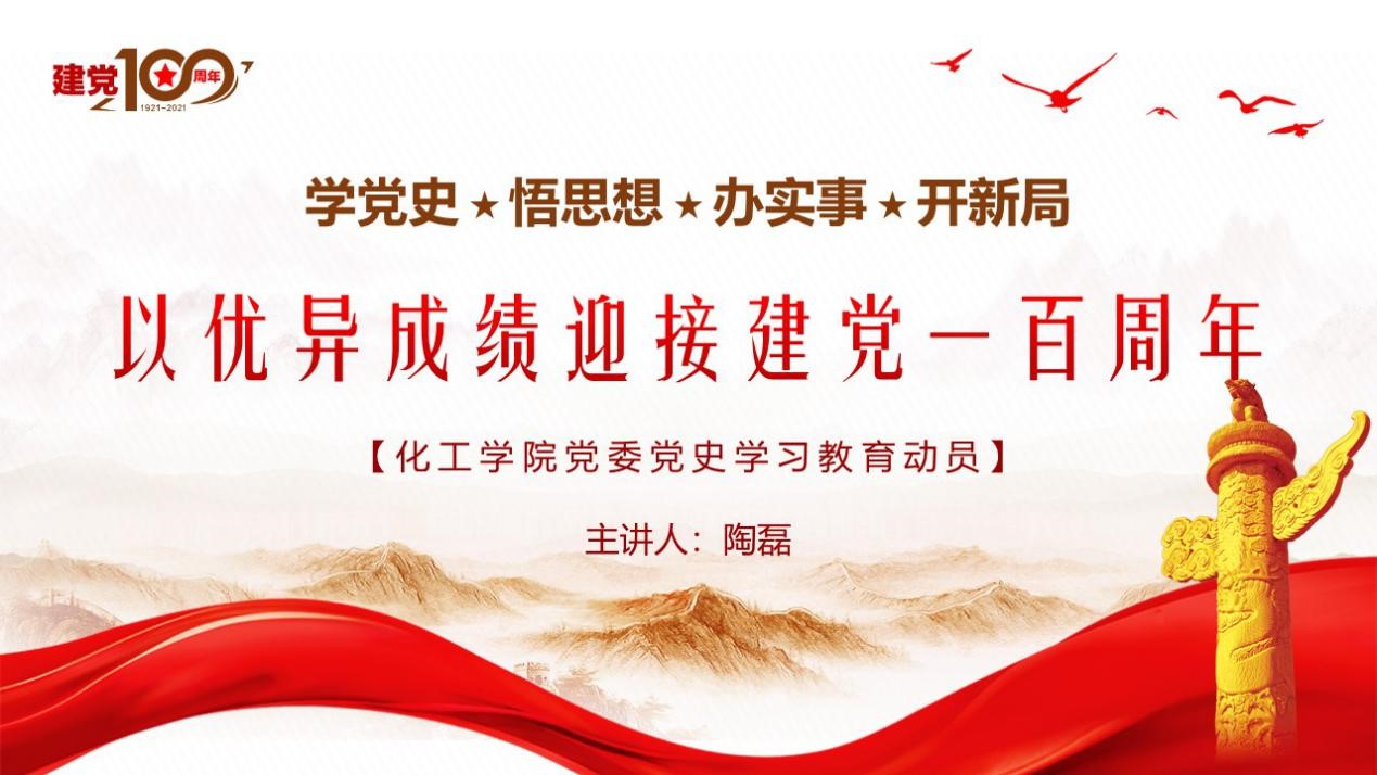 党委副书记陶磊进行了党史教育动员,传达学校党史学习教育动员部署大会精神和学院相关工作安排。他指出,党史学习要紧紧围绕习近平总书记在党史学习教育动员大会的重要讲话精神,充分结合自身科研学习生活,从“四史”学习的各角度阐述学史明理、学史增信、学史崇德、学史力行的重要意义,努力将“四史”学习下沉到基层、动员到每一个班级同学的身上。