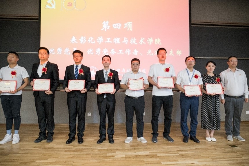 两优一先表彰决定》。分党委书记张早校、党委委员杨贵东、党委委员陈飞分别为获得先进党支部、优秀党务工作者、优秀党员颁发证书。