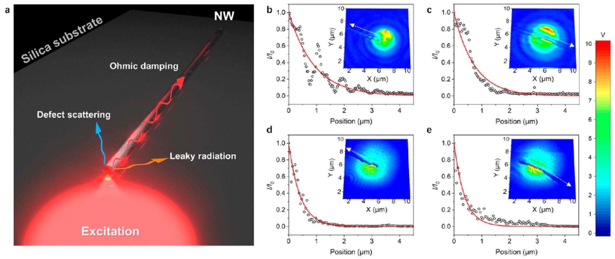 此外,为了阐明材料表面近场光热转换的物理原理,研究团队分别采用了定制化的导电原子力探针(CAFM)、开尔文探针(KPFM)、量热扫描探针(SThM)和扫描近场光学显微联用系统(SNOM)原位测量获取了单根基元材料上激发态热电子、肖特基势垒、微小热流等特征参数,并直观证实了光子在共格孪晶铜表面沿纳米线轴向波导传递以及热电子弛豫过程。该研究系统定量分析了Cu@PPy 纳米线材料的结构-功能相关性,证实了表面等离子体介导的光子-声子能量转移模型中波动电动力学模型的基本正确性。这些结果为近场光-物质交互作用中的内在耦合关联提供了明确证据,初步解释了显著增强的跨尺度、跨介质光热转换机制。等离激元纳米材料提供了一种独特的能量转化与分配平台,研究这种特殊微区环境下的理化过程不仅具有重要的基础研究意义,而且为促进光驱动能量转化提供了一条新的途径。