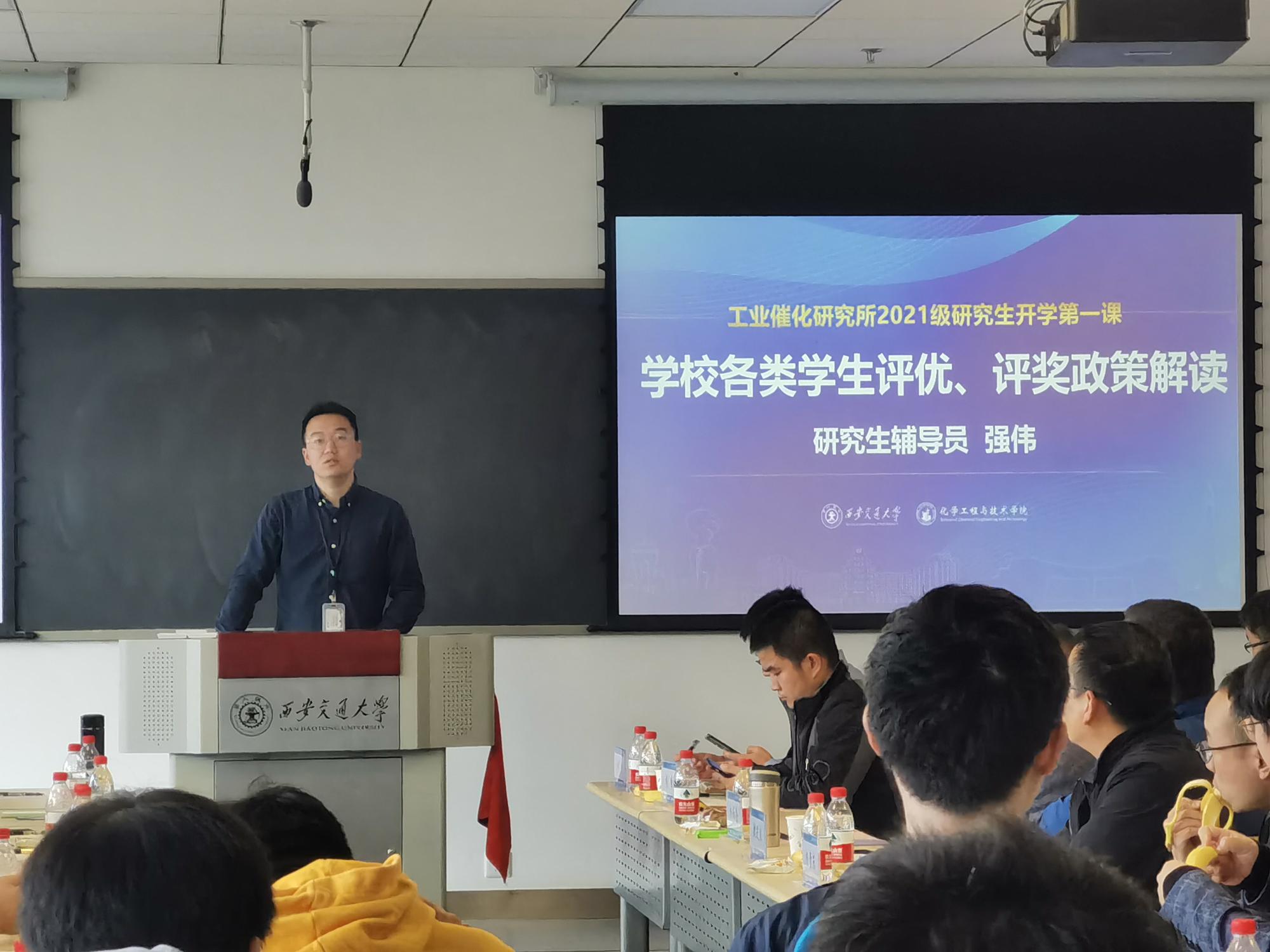 研究生辅导员强伟,则向全体研究生新生全面介绍了学校的各类评优评奖政策,以及研究生生活中的各类文体活动、科创类活动、社会实践活动,研究生就业等注意事项,并鼓励同学们在做好学习科研的同时,也能够在“德智体美劳”等方面全面发展,丰富自己的研究生生活。
