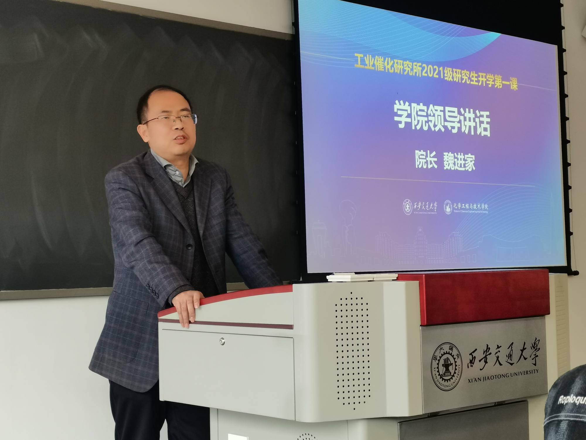 院长魏进家教授做总结发言。魏院长首先结合国家双碳目标,号召同学要抓住绿色化工发展的新时机,在化工领域有所作为;同时,魏老师也细数了工业催化研究所成立以来在人才培养、师资队伍、科研项目、国际合作等方面取得的突破性成绩,并祝贺同学们加入了一个快速成长的学院和一个优秀的研究团队;因此,他也勉励希望同学们珍惜难得的机会,努力学习,刻苦钻研,为工业催化所、为学院学校以及化工行业做出优异的贡献。