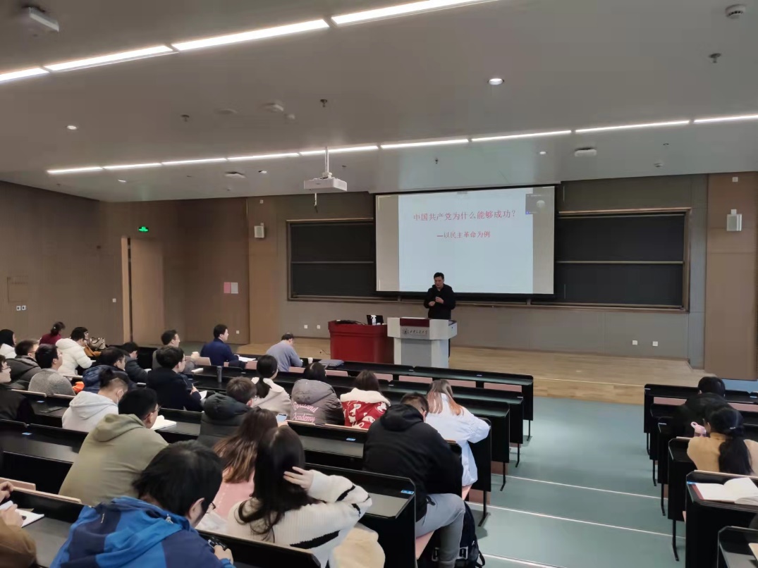 接着,陆卫明教授做了《中国共产党为什么能够成功——以民主革命为例》主题讲座。陆老师以民主革命作为解读十九届六中全会精神的引子入手,旁征博引,结合他多年以来对中国共产党党史研究的丰硕成果,以国际视野的角度解读中国民主革命。运用大量丰富的案例介绍了解放战争爆发的时代背景、分析了中国共产党取得胜利,国民党最终失败的原因,使全体师生全面了解了新中国成立之前中国共产党走过的那段苦难而辉煌的岁月。也正是通过这些苦难的辉煌,才造就了我们伟大的建党精神。诚如习近平总书记所说:“只有回看走过的路、远眺前行的路,弄清楚我们从哪儿来,往哪儿去,很多问题才能看得深、把得准”。