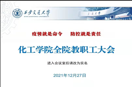 陶磊首先传达了学校疫情防控工作精神并通报了学校对学生和教职工提出的相关要求。他指出,疫情防控是目前全院工作的重中之重,全体师生务必提高政治站位,做好核酸检测和每日健康日报填写工作,导师要加强对研究生的在线指导和关心关怀,全体教职工要做好与疫情斗争的充分思想准备。