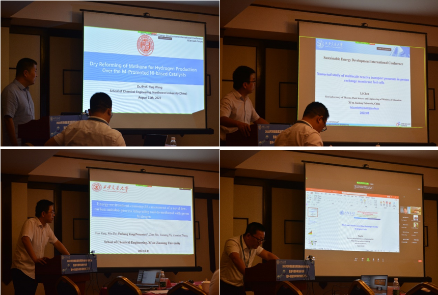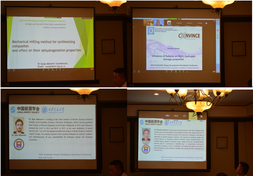 之后是各位专家的分享环节。王玉琪教授、陈黎教授、杨福胜教授、马挺教授、Sanja Milošević Govedarović博士、Sandra Kurko博士、Igor Milanović博士和Katarina Batalović博士围绕重整制氢、燃料电池、绿氢煤化工、加氢制冷、固态储氢、理论模拟等方面,分别做了以“Dry Reforming of Methane for Hydrogen Production Over the M-Promoted Ni-based Catalysts”、“Numerical study of multiscale reactive transport processes in proton exchange membrane fuel cells”、“Energy-environment-economy(3E) assessment of a novel low-carbon emission process integrating coal-to-methanol with green hydrogen”、“Study on printed circuit heat exchanger used for hydrogen cooler”、“Mechanical milling method for synthesizing composites and effect on their dehydrogenation properties”、“Influence of defects on MgH2 hydrogen storage properties”、“Solid state reaction between metal hydrides and ammonia borane: mechanochemical synthesis of mono- and bi-metallic amidoboranes”、“Theoretical tools for the investigation of hydrogen storage materials – from DFT to machine learning”为题的精彩报告,引起与会者热烈的讨论与交流。