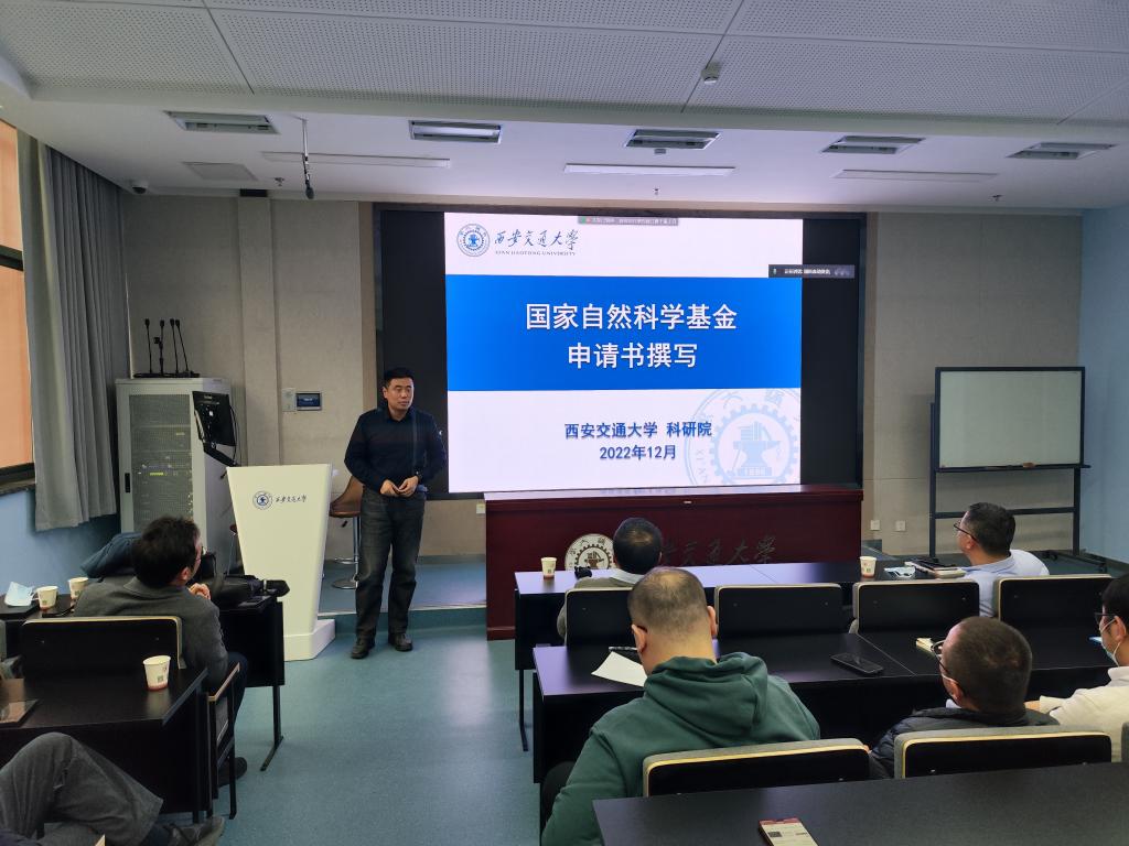 2022年自科基金的申报和获批情况,并对2023年国家自然科学基金的相关政策进行了解读,他从学院年度基金获批情况、十三五期间基金获批情况、十四五获批基金计划几方面进行综合分析,指出了下一步学院基金申报工作需要努力的方向。科研院基础与海外合作处主管何会针对申请书撰写过程中的科学问题属性等要点进行了详细讲解和说明。