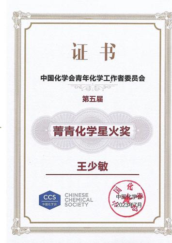 博士生王少敏荣获中国化学会“菁青化学星火奖”。
