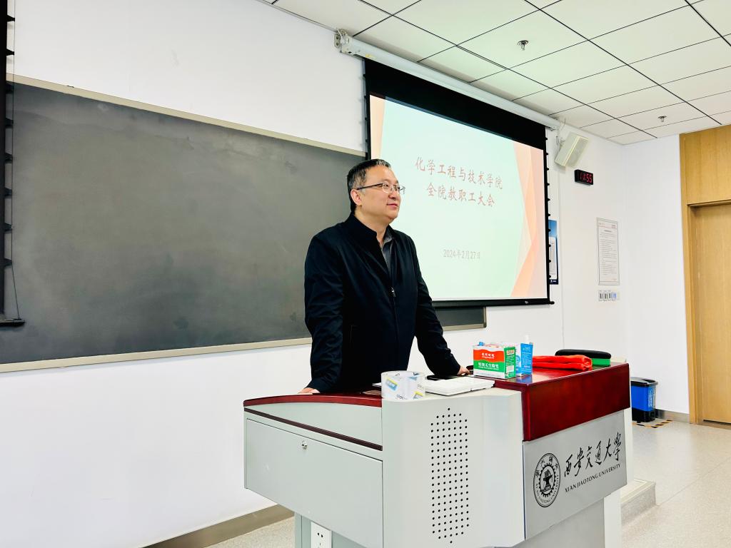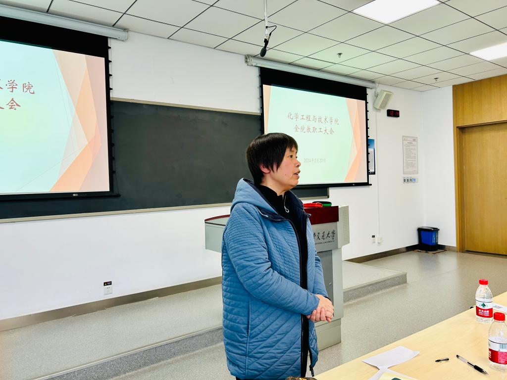 杨贵东宣讲了学院在关注职工健康、丰富学院文化等方面拟开展的措施。他指出,学院发展进入了“快车道”,同时也步入了“深水区”。他在肯定学院一年来各项工作取得的成绩的同时,也提出了在领军人才培养、高水平团队建设等方面面临的问题与挑战,希望全院教职工秉持“自信、友善、担当”精神,在大项目大成果申报、团队建设、产学研深度融合中的研究方向调整等方面扛起责任,奋发担当,持续推进“教育、科技、人才”一体融合发展,共创化工荣誉。