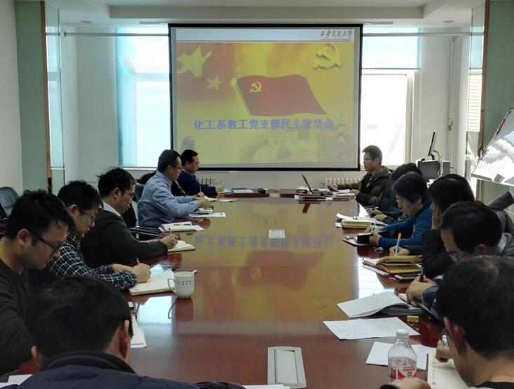 会上支部书记周强教授首先传达了学校《关于开展2016年度民主评议党员的通知》文件的精神及校党委对民主生活会的要求。随后,周强书记对2016年化工系教工党支部的工作进行了总结,分析了支部成员在“两学一做”学习活动中的学习情况,查摆了支部在民主生活会的形式、学习效果等方面存在的问题,包括目前支部委员分工不太明确、组织生活时间不确定、记录不够翔实等,并有针对性地提出了下一步的整改措施。在周强书记带头剖析了个人存在的问题与不足之后,支部的成员对其进行了评议。随后,支部的每位党员用“四讲四有”为标尺,坚持问题导向,剖析了个人在理论学习、理论联系实际、学院服务、个人业务等方面的差距和不足,明确了努力的方向,并提出了相应的整改措施。在每位党员进行了党性分析自评后,大家进行了相互评议。