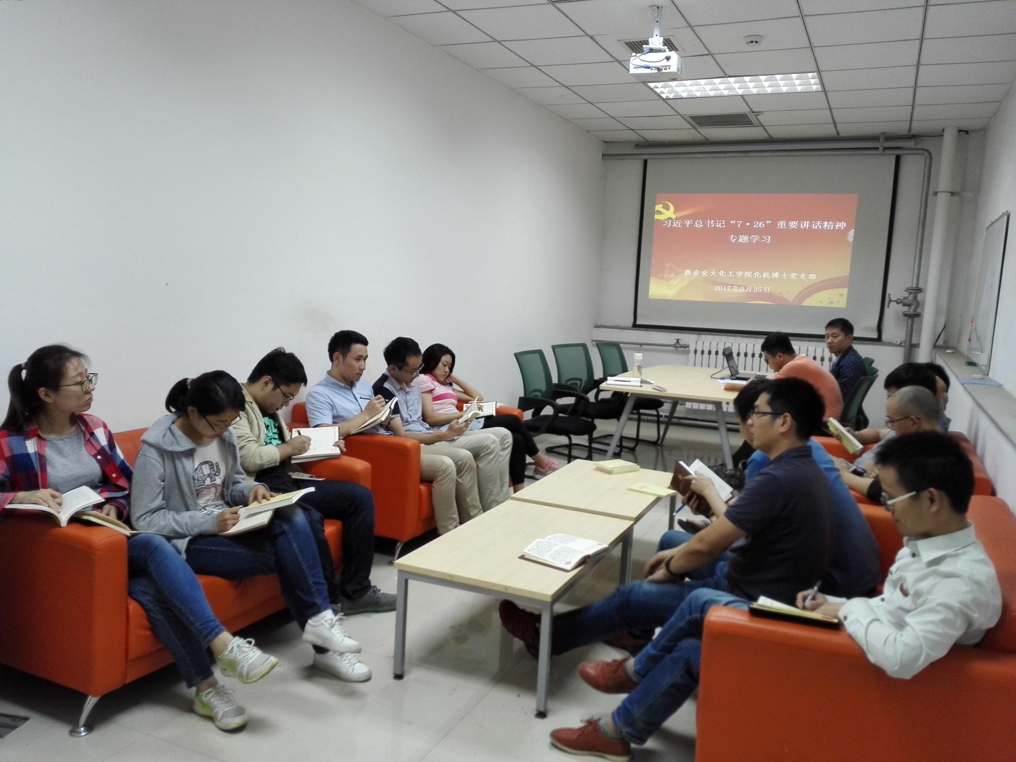 首先支部书记给大家介绍了党支部新加入的入党积极分子简冠平同志,然后带领大家学习了习近平总书记“7.26”重要讲话,并结合自身的理解对“7.26”重要讲话精神学习文件进行了较为详细的解读。