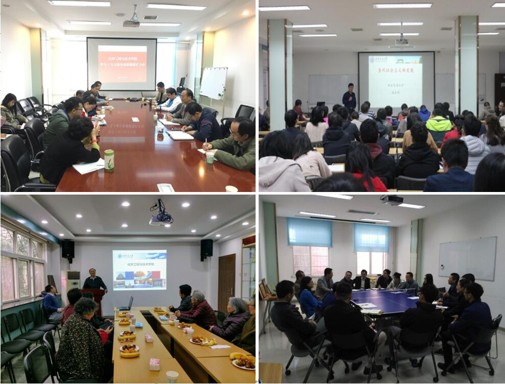 党总支贯彻落实学习十九大报告精神学习计划》,对十九大精神的学习、宣传和落实等工作进行了部署,提前谋划早上手。随后,各支部积极行动,纷纷通过聆听报告、畅谈感想等多种方式,学懂精神,掌握要领。10月24日上午组织全体非党员教师对十九大报告进行了研读学习,达到了师生全覆盖。25日下午,邀请我校十九大精神理论宣讲团成员、马克思主义学院陆卫明教授为全院师生党员做了《当代社会主义新发展》主题报告,为师生提供了系统化、多角度的理论阐释和思想指导,帮助师生深化对党的十九大精神的理解和认识。28日下午,结合重阳节,举办了“畅谈十九大聚焦创新港”的退休教职工茶话会,发动老教师献计献策,学院的发展和创新港实验室建设、团队组建、研究方向布局、研究校友资源挖掘等提供新思路,奉献新资源,做出新贡献。11月9日,再次召开党支部书记会议,对十九大精神的学习又提出了明确的要求。