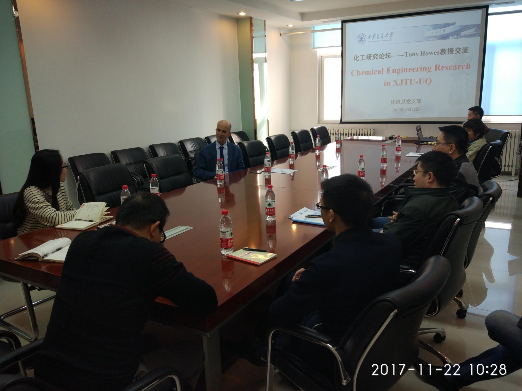 2017年11月22日上午化机系党支部落实“向双一流冲锋”主题党日活动,开展化工研究论坛——邀请澳大利亚昆士兰大学Tony Howes博士到支部进行交流。交流活动在厕所偷拍