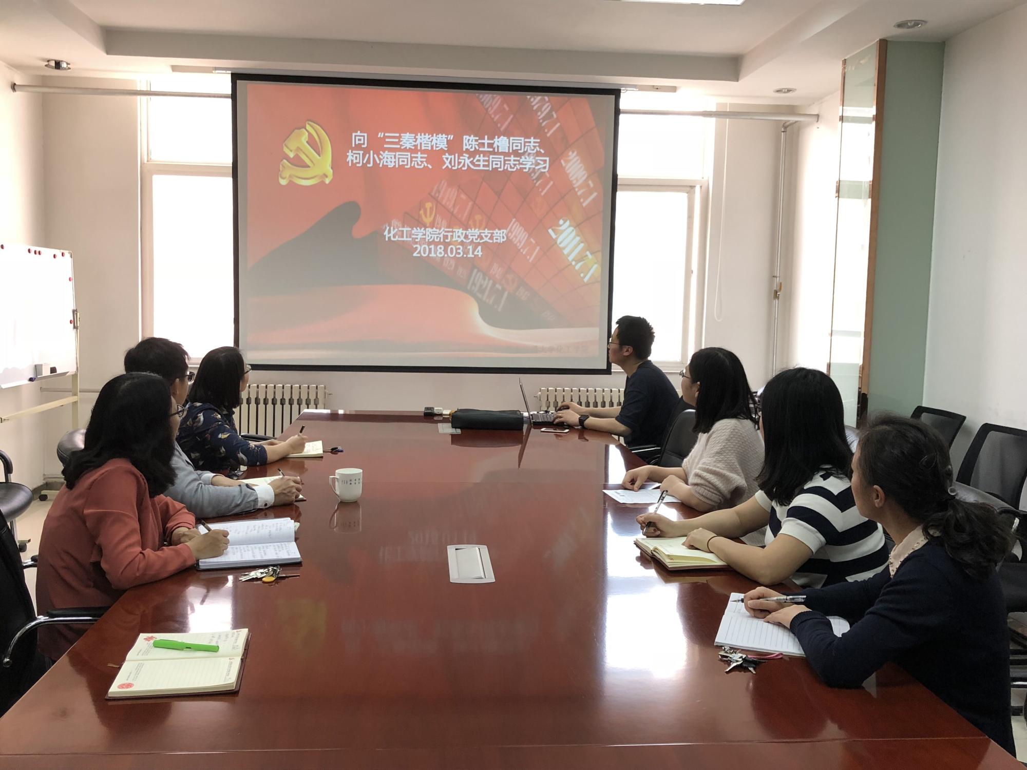 行政党支部于3月14日召开了专题组织生活会,共同学习“三秦楷模”的优秀事迹。会后全体党员集体观看《厉害了,我的国》,再受爱国主义教育。
