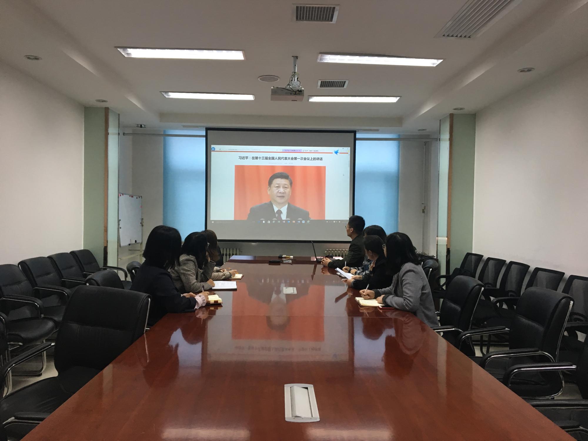 开幕式结束之后,支部全体成员集体学习了习近平总书记在十三届全国人大一次会议上的讲话精神及人民日报所发社论。习总书记在讲话当中盛赞中国人民,称赞他们在几千年的历史发展当中用勤劳、智慧、团结、奋斗所铸造的灿烂文化和辉煌成就,他通过对国家发展各个方面工作的精确阐述与分析高屋建瓴的擘画出国家未来工作的方向。联系到我国五年来各项事业取得的伟大成就,感受到中华民族切实实现了从站起来到富起来再到强起来的历史性飞跃,无不使人热血沸腾,对未来充满信心。