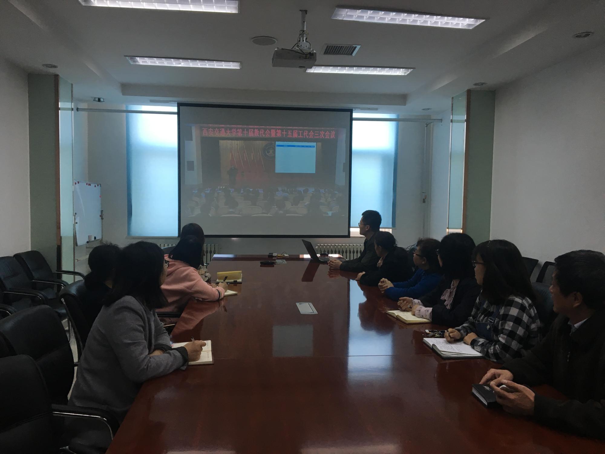 3月23日下午,行政党支部组织全体办公室同志共同收看了我校第十届教代会暨第十五届工代会三次会议开幕式直播。大家认真听取了王树国校长所作的工作报告,全面了解了我校上一年度各项工作所取得的不俗成绩,同时也深刻认识到2018年是学校的关键之年,时间紧,任务重,每一位交大人都必须携起手来,尽自己最大的努力共同奋斗。