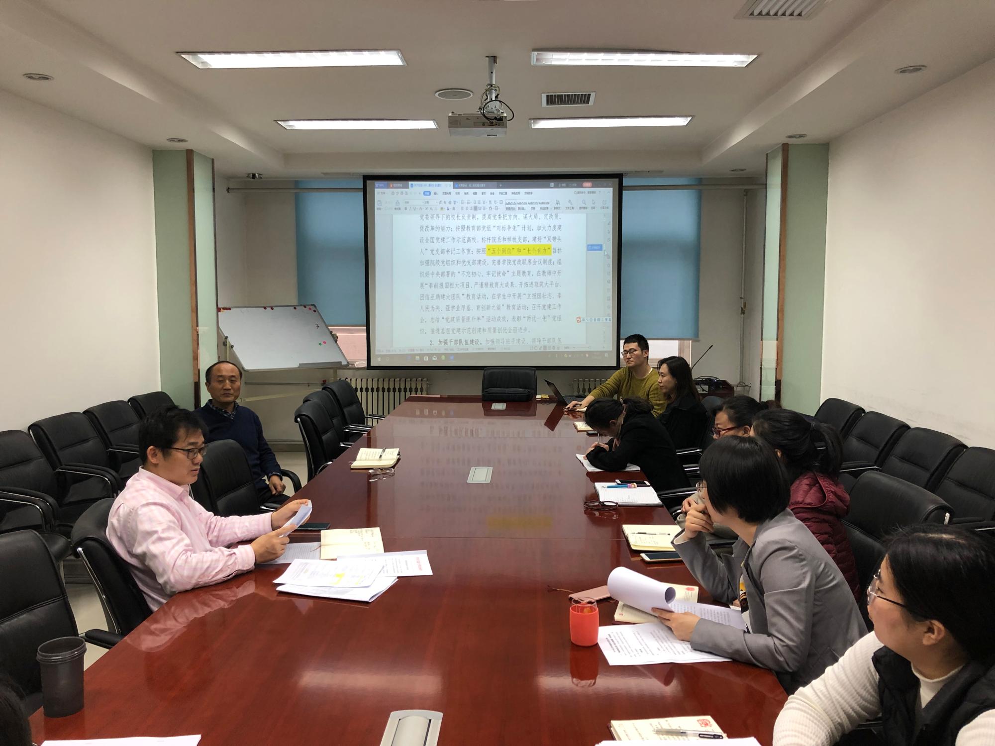 首先,蔡老师带领全体成员逐条认真学习了校党委下发的我校2019年工作要点,系统了解了本年度的十个具体工作方向,从中不难看出今年任务重压力大,作为创新港内涵建设、一流大学建设中期评估、完成“十三五”规划目标任务的攻坚之年,2019年必须要继续拼搏,凝心聚气,用更多的投入去奋斗。与会人员结合自己的工作,对2019年的主要工作要点进行了梳理和认领,对如何完成今年的任务谈了自己的体会。大家纷纷表示,一定牢固树立服务意识,用更严格的标准要求自己,用更多的投入做好本职工作,助推学院的发展。
