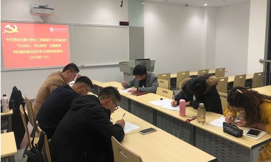 为了让学习落到实处,支部还现场采取闭卷答题的形式进行了“不忘初心、牢记使命"主题教育党的基础理论知识学习成果检验测试,通过以考促学,以考促行。