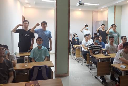 接着,全体起立奏《国际歌》,新一批预备党员起立宣誓。刘彦铄代表新党员发言,表示一定会发挥党员的先锋模范带头作用,争做一名党员一面旗帜,提高自身的政治、文化素质,理论与实践并举,做现代化建设的排头兵。宣誓结束后,全体起立奏唱国歌。