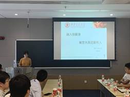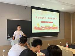 首先,党支部书记朱鹏飞介绍了硕9133党支部的基本情况,支部依托硕9133行政班建立,党员人数占班级总人数74%。支部同志思想活跃,学风科研氛围浓厚,经过一个学期的支部工作,目前已形成积极向上的良好氛围。接着进入支部的主题“融入创新港,做交大西迁新传人”。朱鹏飞首先播放了“背起行囊去远方”纪录片,带领大家重温交大西迁历史,学习领会西迁精神。