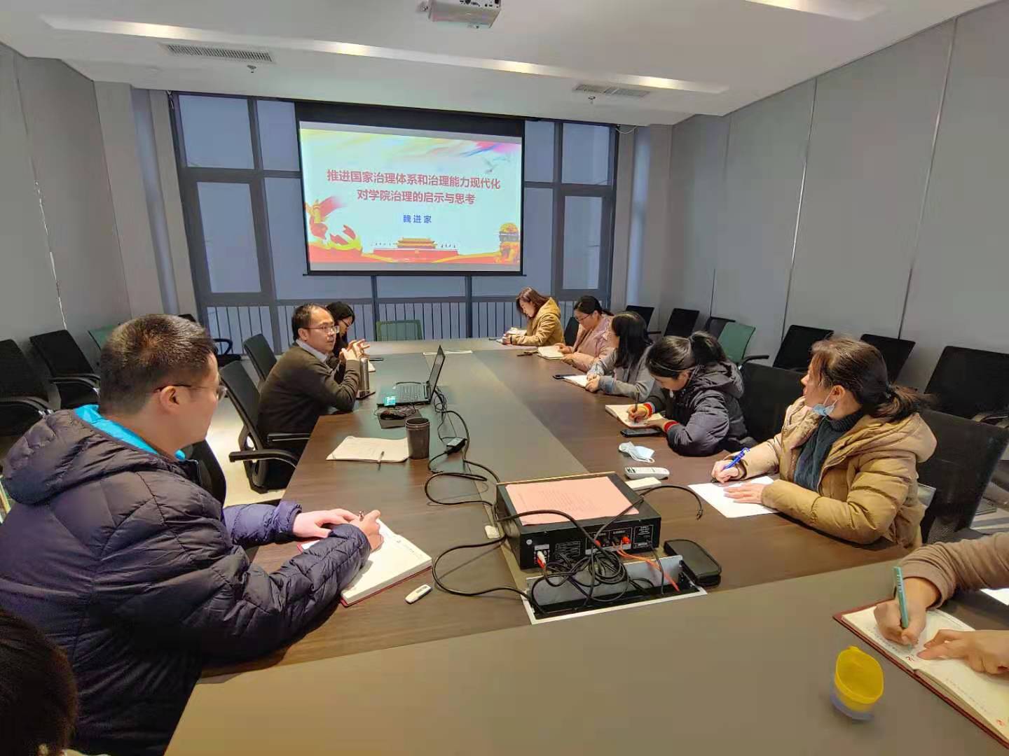 院长、分党委副书记魏进家走进行政党支部,为全体支部党员带来主题为“推进国家治理体系和治理能力现代化对学院治理的启示与思考”的党课。会议由行政党支部书记蔡元汉主持。