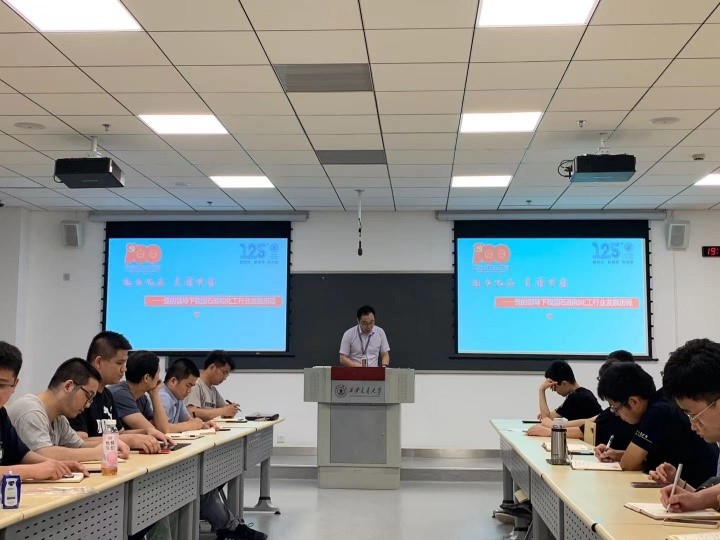 支部书记吴志强作专题党课,带领大家共同学习党的领导下我国化工行业发展历程,回顾了我国石油化工行业从无到有,从弱到强的百年历程,与师生们学习了解我国石油化工行业在党的领导下诞生、发展、崛起的光辉岁月,以及科学巨匠李四光、铁人王进喜、时代楷模陈俊武等优秀共产党员的无私奉献,并号召在座的党员群众积极响应党的号召,向新时代石油化工强国进军的目标奋力前行。